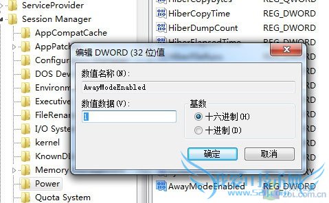 运行注册表编辑,依次进入HKEY_LOCAL_MACHINE\SYSTEM\CurrentControlSet\Control \Session Manager\Power,然后在右侧窗口空白处单击鼠标右键,新建一个“DWORD 32位”的值,并命名为“AwayModeEnabled”,双击给该键值,并赋值为“1”(16进制)。