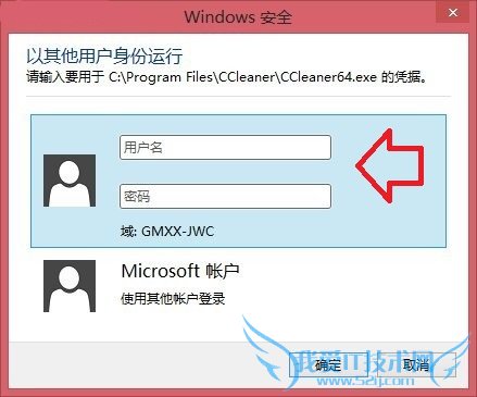 长按“Shift”键,然后右击相应程序的快捷方式图标,便可发现右键菜单中增加了一个“以其他用户身份运行”的选项,点击该项就会弹出Windows安全登录窗口,如下图所示;