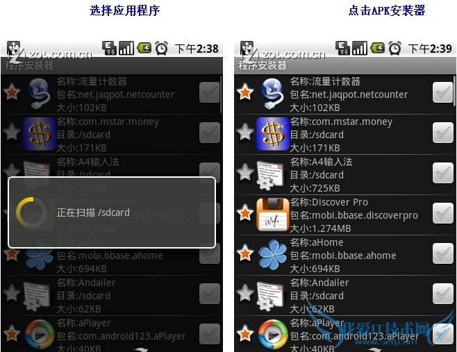 只要把APK程序都放到SD卡上,就可以直接在这个内置的APK安装器上进行软件的安装与卸载。