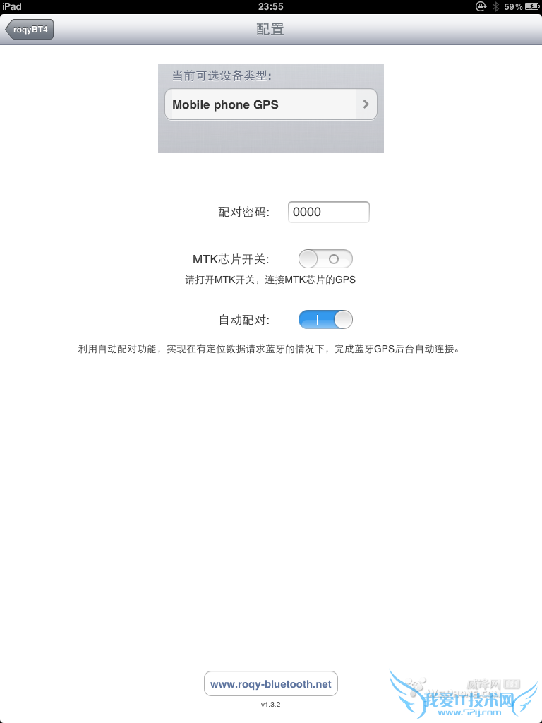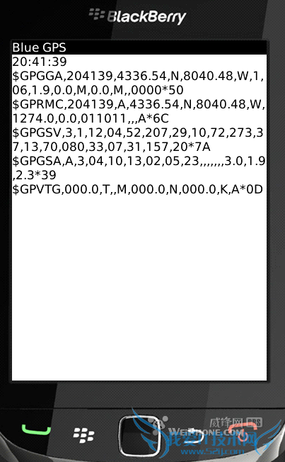 然后用黑莓手机添加蓝牙设备与ipad配对,配对成功后开启黑莓手机上blue gps软件出现下图信息