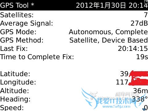 室外开启黑莓手机上Gps Tools 软件进行卫星搜索