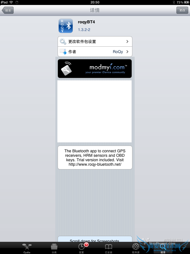 答:安装步骤: 1、iPad/iPad2先越狱 2、在Cydia里安装了Mobile Substrate。打开Cydia,点击右下角的Search按钮,输入Mobile Substrate,如果Mobile Substrate右侧有绿色的对钩,表示已经安装了,退出Cydia。 3、在Cydia里搜索roqyBT并安装,运行iPa... >>详细
