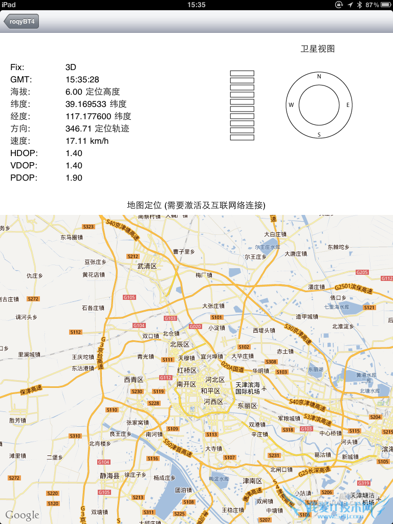 连接成功后roqtBT4会出现GPS信息(此时蓝牙GPS数据已成功分享)
