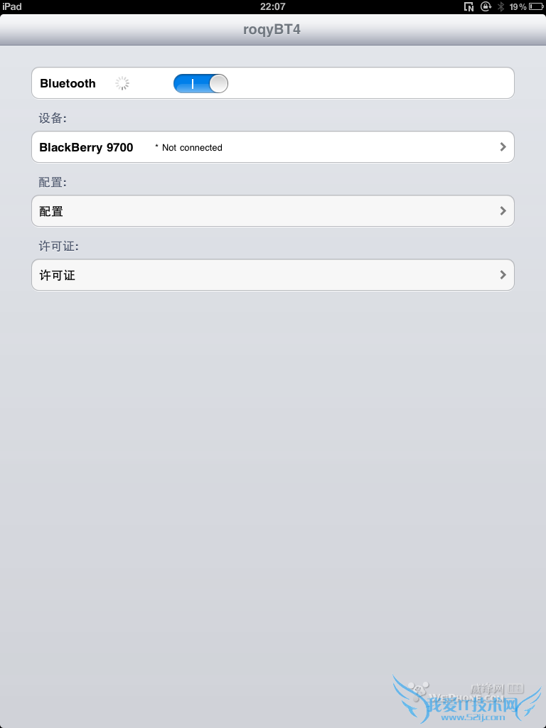 看到如上图信息可开启ipad roqyBT4 软件与黑莓进行蓝牙通讯