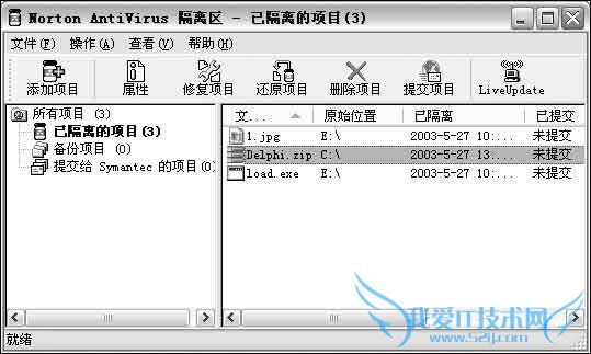 现在我们以NA(Norton AntiVirus诺顿病毒防火墙)为例,来看看如何用NA的病毒隔离系统,“隔离”要保护的文件。