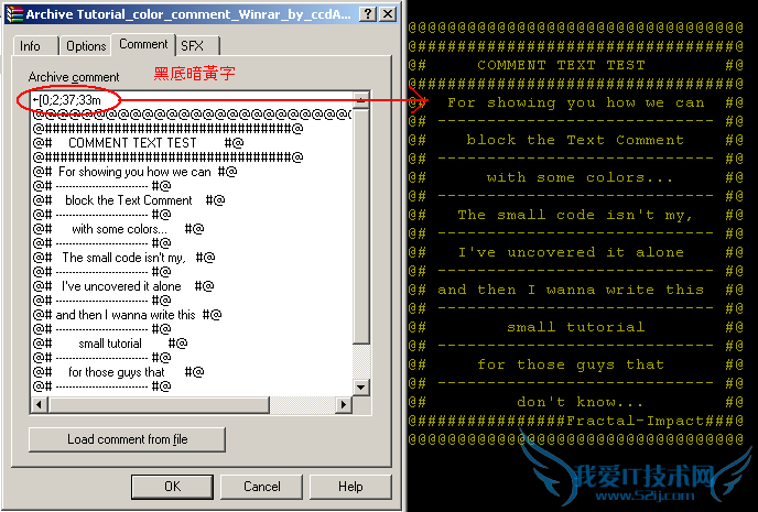 WinRAR有一项支持ANSI色彩代码注释的功能,使用色彩注释,可以让注释变得丰富多彩,用来做个人签名,不过目前不支持中文。