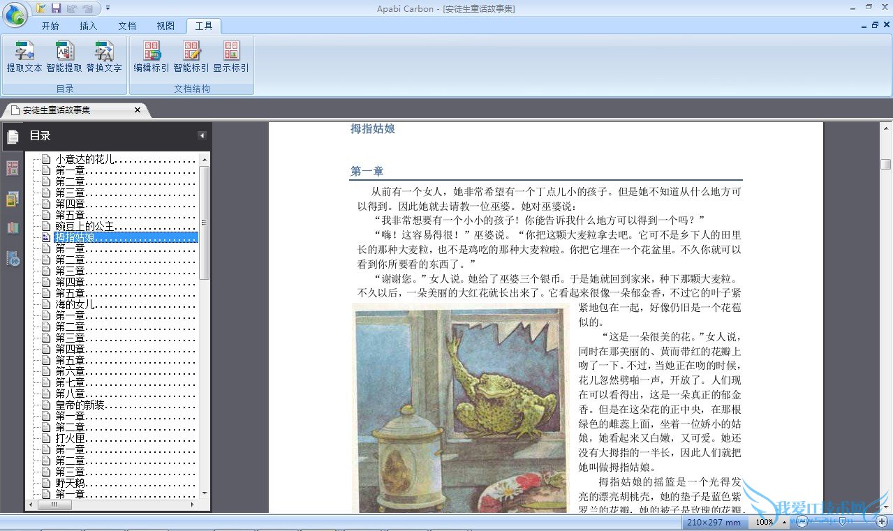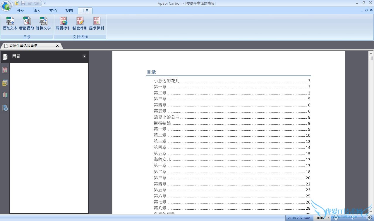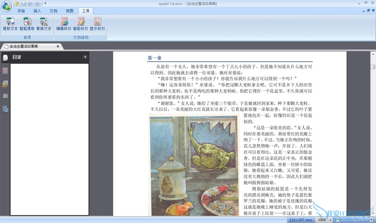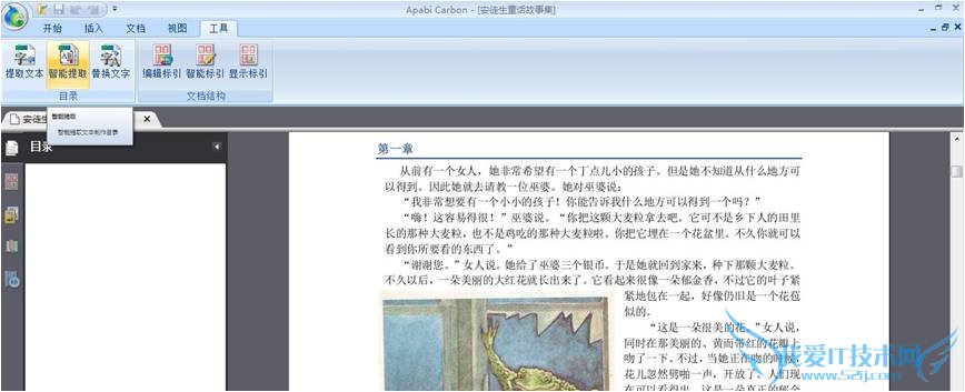 点击Apabi Carbon中的“工具”就可以看到目录工具栏,然后点击“智能提取”