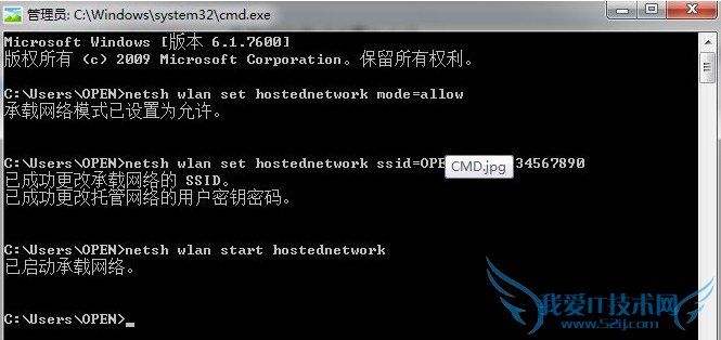 2、netsh wlan set hostednetwork ssid=无线网络名称 key=无线网络密码