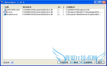 单击“解锁”或“全部解锁”按钮,然后就可以安全删除。如果没有文件或文件夹被某进程锁定,那么直接在下拉列表框中选择“删除”操作就可以了。