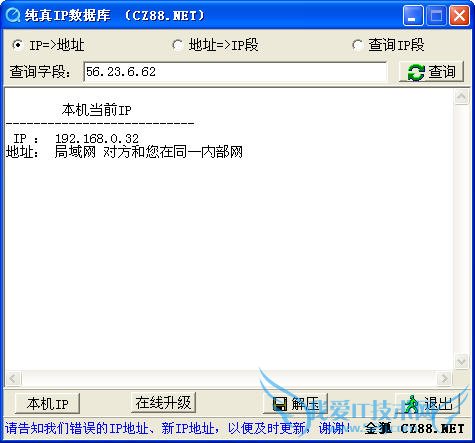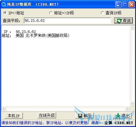 答:输入IP以查询地址 。 更新还是不更新无所谓了 ,不是很常用。 >>详细