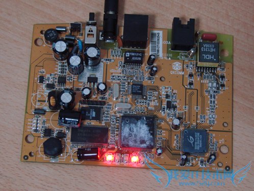 对比一下不难发现,LINKIN TB-8108G的集成度很高,工作时用手按住芯片并不觉得烫手,而饭盒自用的ADSL猫大大小小包括了5个芯片,最大的两颗上面被饭盒涂了硅脂,平时上面固定着散热片,温度高到芯片无法用手按住。