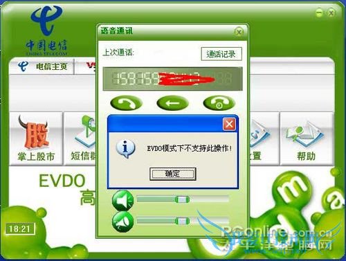 联晨科技睿1200 EVDO 上网卡配套软件能够使用电脑麦克风进行语音通话,这个操作也和短信发送一样,不能在EVDO模式下进行,需要撤换到CDMA 1X模式下进行。