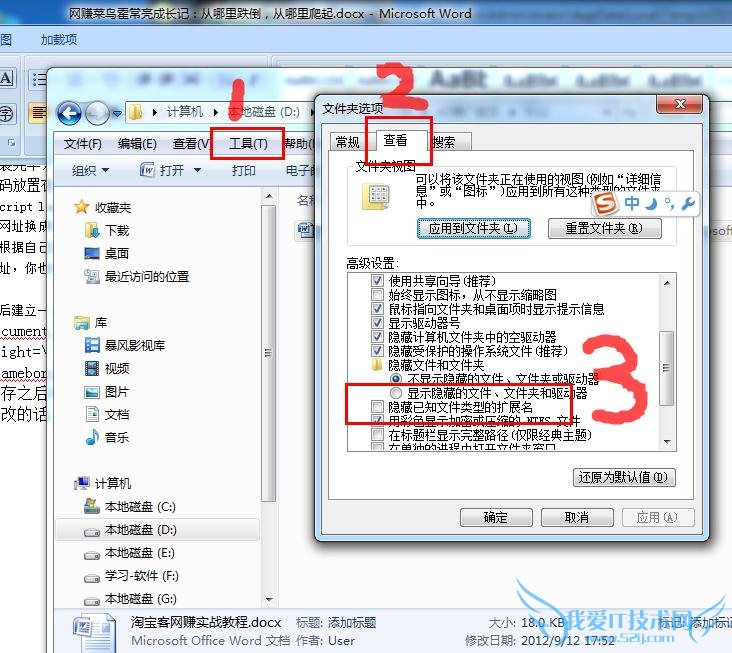 随便打开一个文件夹,然后再菜单栏里面找到工具,之后选择文件夹选项,打开之后选择查看,找到隐藏已知文件的扩展名,将前面的对勾打掉就ok。然后吧这个jsad.js文件放进你的网站的根目录中,刷新一下网页,看看是不是已经完成的调用?