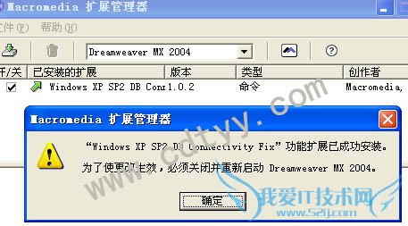 通过一个系统扩展插件就可以完美的解决上述问题,这个插件是Dreaweaver发布的,名字叫SP2DBFix1.0.2.mxp,通过这个插件能让操作系统和网页数据设计融为一体。