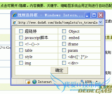7. 采集方面织梦的新版本中也做了很大改进,大家最烦恼的过滤规则,在新版本将得到有效的解决,你可以自己在过滤规则中选择相应的过滤内容,可以说是非常的方便。