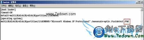 数据库服务器:打开C:\boot.ini 文件,设定 /PAE 参数后保存重新启动。如图