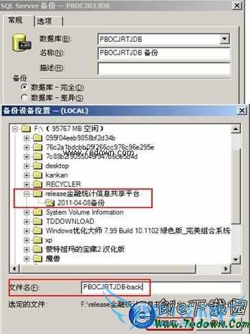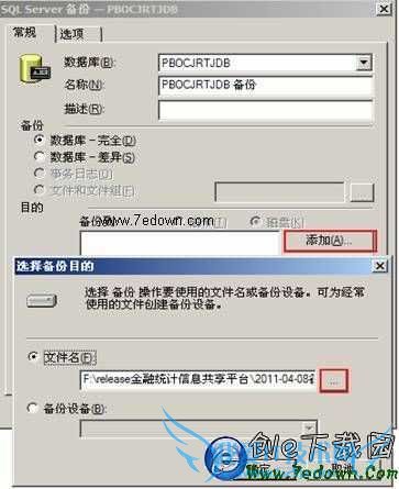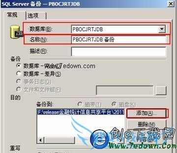 目的:点击“添加”按键添加F:\release金融统计信息共享平台\2011-04-08备份\PBOCJRTDB-back 如图: