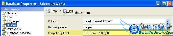 如果是使用SQL Server Management Studio创建数据库的话,你可以在“Options”卡片里修改数据库的兼容性级别,如下图所示: