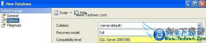 我们可以使用“Script”脚本,如下图所示,SQL Server执行CREATE DATABASE语句,然后执行“sp_dbcmptlevel”就可以把数据库兼容性级别设置为80.