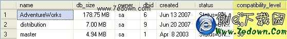 60=SQL Server 6.0 65=SQL Server 6.5 70=SQL Server 7.0 80=SQL Server 2000 90=SQL Server 2005识别数据库的兼容性级别