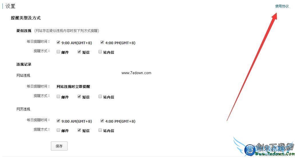 1、登录阿里云绿网页面,点击设置就可以看到上图所示页面,点击箭头指示的地方