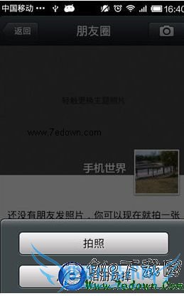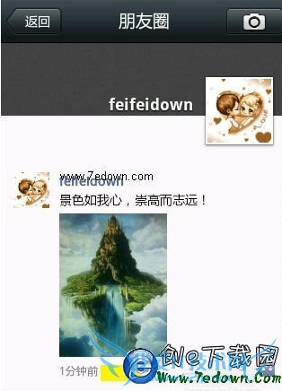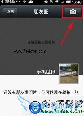 2、然后在打开的朋友圈窗口中,点击窗口右上角的照相机按钮