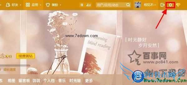 1,在电脑上打开QQ,点击进入QQ空间的图标,进入到个人QQ空间界面,点击右上角的小齿轮图标,进入到QQ空间权限设置界面,如下图所示