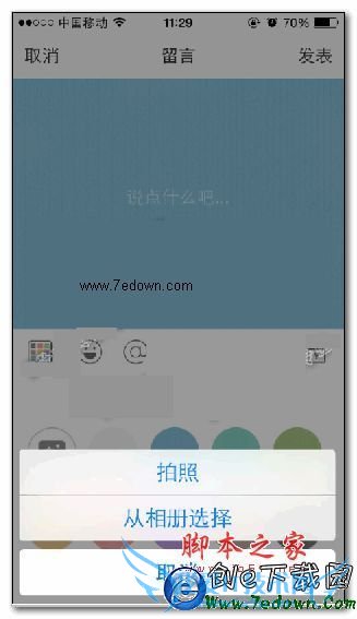 2.然后点击留言,在然后你就可以看到一些背景,还有可以选择自己手机里的照片,或者拍照。
