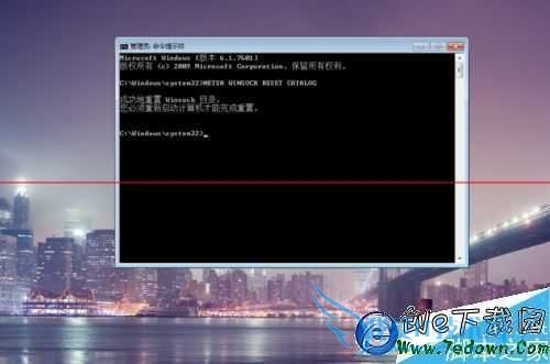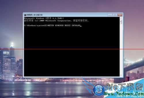 2、在命令行中我们输入:“NETSH WINSOCK RESET CATALOG”。
