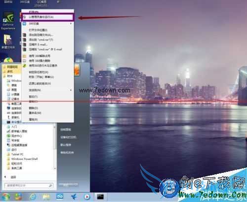 1、我们在开始菜单栏中的附件中找到“命令提示符”,然后点击右键选择“以管理员身份运行”。