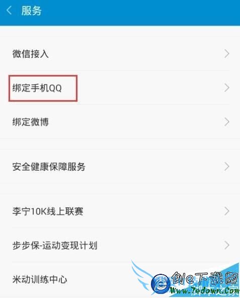 3、进入服务界面,绑定qq号,如下图操作。这样就绑定了qq号,在qq健康里面就可以看到每天的计步数。