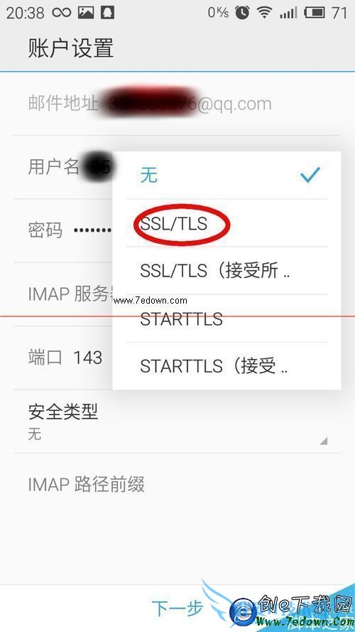 3、点击编辑进去之后在安全类型那里选择SSL/TLS,然后点击下一步,再下一步就OK啦!妥妥登录没问题!要是登录还是出现用户名或密码不正确,那真的是用户名或密码不正确了,回来仔细输入用户名或密码,再按照刚才的方式选择安全类型登录,就OK了!