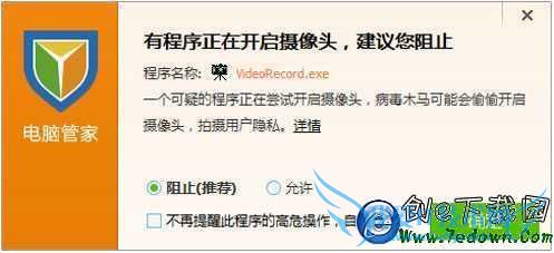 另外,使用QQ过程中,若摄像头非本人开启,电脑管家也将在第一时间提示您,避免"被视频"。