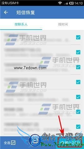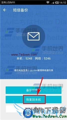 2)接着点击【恢复到本机】,你可以点击全选,也可以单独勾选需要恢复的短信,然后点击右下角的【恢复】按钮即可。(如下图)
