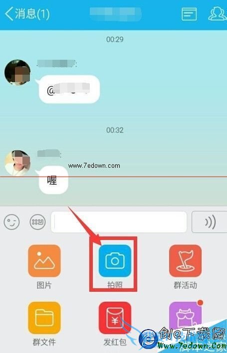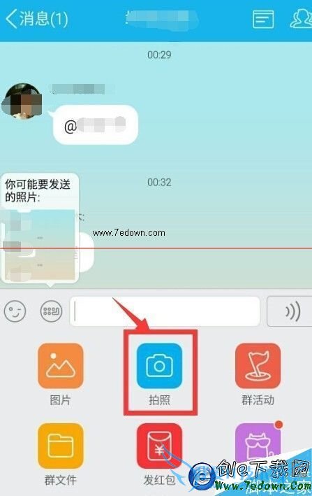 5、此时返回QQ聊天窗口中,点击“拍照”,此时就可任意自拍咯、