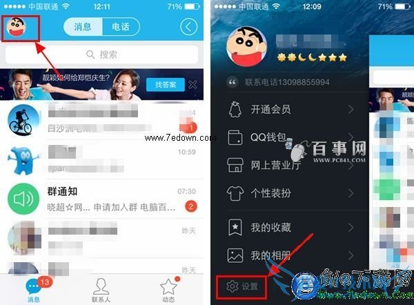 一,首先打开最新版的手机QQ,登陆进入到主界面,点击右上角的“QQ头像”,随后点击左下角的“设置”按钮,如下图所示: