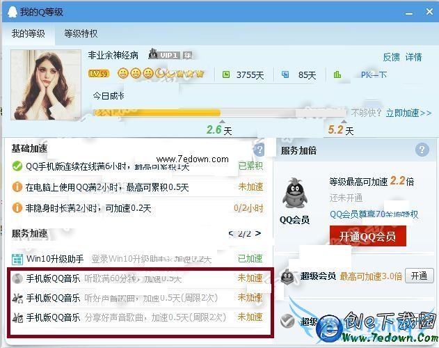 为什么用手机QQ音乐分享了歌曲却没有QQ等级加速?
