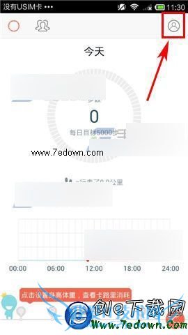 1)打开【春雨计步器】,进入首页后点击右上角的【人头像】。(如下图)