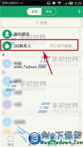 1)打开来电,进入到通话页面后,点击【通讯录】,跳转后点击【QQ联系人】一项。(如下图)