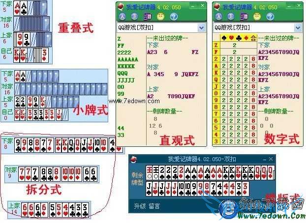 我爱QQ记牌器 为棋牌类游戏的辅助记牌器工具,它可以帮助玩家记录各家出过的牌,自动统计除自己外的还没出的牌,根据玩法不同,辅助统计功能显示内容也不同。