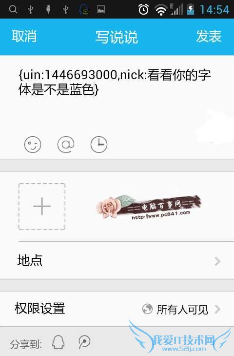 欢迎您访问我爱IT技术网,今天小编为你分享的电脑教程是QQ技巧系列之:【qq空间说说字体怎么变蓝?手机qq发说说字体变蓝方法】,下面是详细的分享!