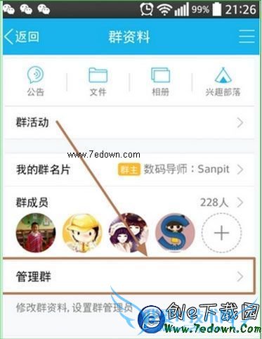 3、如图,点击“管理群”。这里可以修改群资料,设置群管理员,同样QQ群专属头衔也是这里设置。