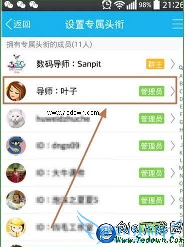 6、现在选择需要对哪个成员进行QQ群专属头衔设置。选中直接点击。