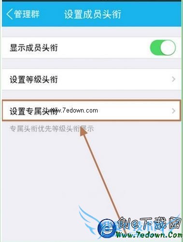 5、在以前的设置等级头衔下面,多了一个“设置专属头衔”点击进入。