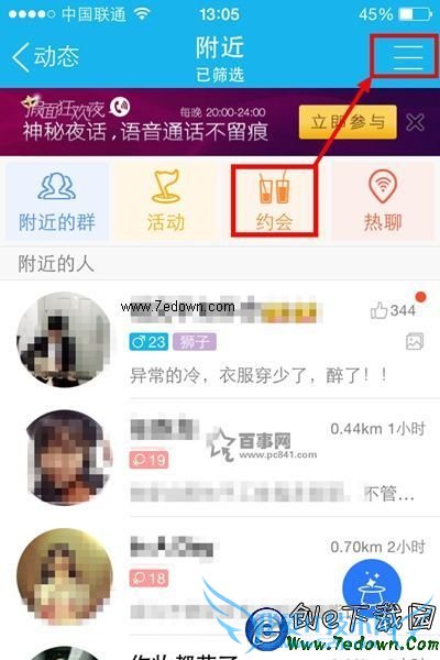 4,接下来在约会界面的右上角找到菜单栏,点击一下,如下图所示: