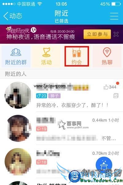3,随后来到了附件页面,在其页面下方点击一下【约会】进入到约会主界面,如下图所示: