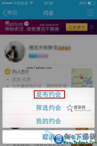 5,弹出选择框,我们选择【发布约会】,如下图所示: