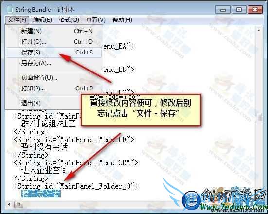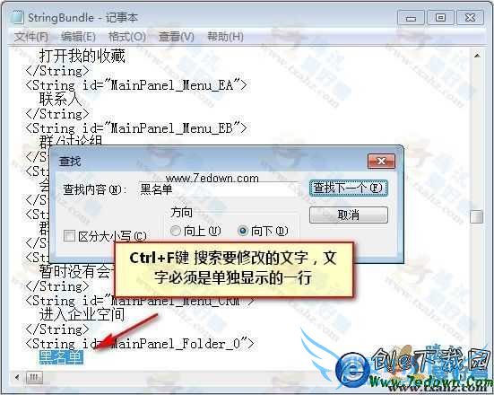 2、记事本打开StringBundle.MXL文件,用快捷方式“Ctrl+F键”查找需要修改的文字。如下图: