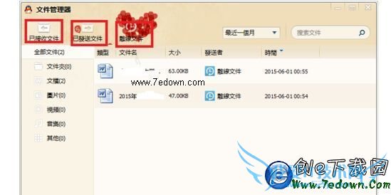 2、打开文件管理器,并可以看到已接收文件、已发送文件和离线文件。