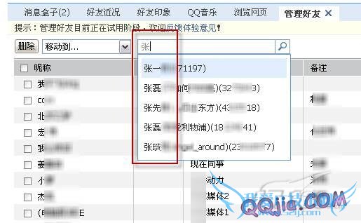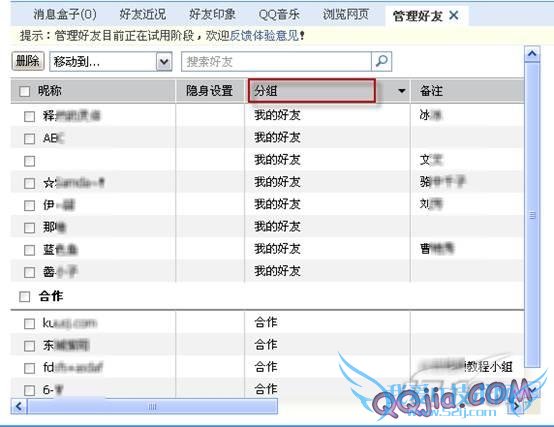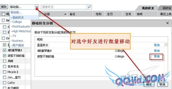 使用WebQQ进行好友管理,最大的一个好处是可以“批处理”。比如我们想将几位好友都移动到某个自定义分组中,就可以这样操作。